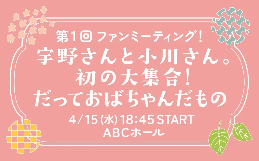 宇野さんと小川さん。初のファンミーティングが開催決定!「だっておばちゃんだもの」で本音炸裂!